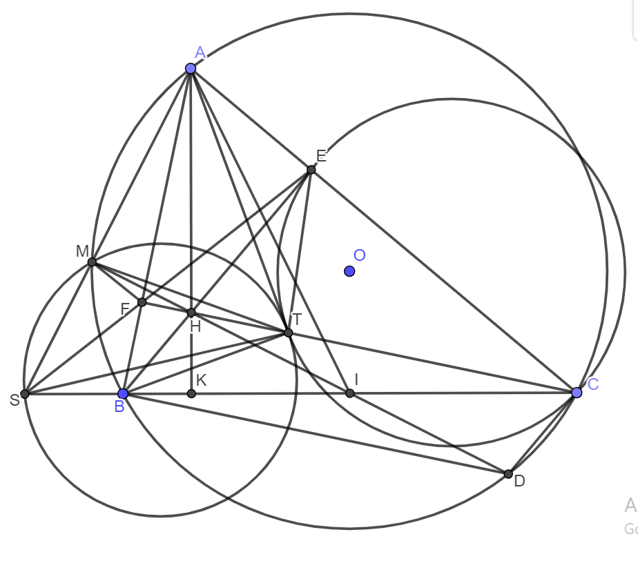 c) Gọi tia \(AH\) cắt \(BC\) tại \(K\), khi đó tứ giác \(HKSM\) nội tiếp