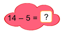 Đếm lùi \(5\) số bắt đầu từ \(14\) ta được kết quả của phép tính.