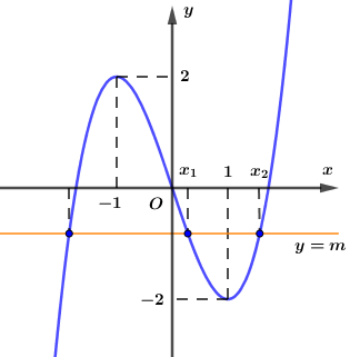 Gọi \(S\) là tập hợp tất cả giá trị thực của tham số \(m\) sao cho phương trình \({x^3} - 3x - m