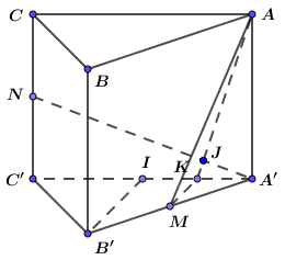 Cho lăng trụ đứng \(ABC.A'B'C'\) có đáy là tam giác đều cạnh \(a\). Gọi \(M,N\) lần lượt là