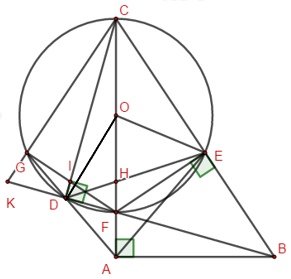 4. Đường thẳng AD cắt (O) tại điểm thứ hai là G , FG cắt CD tại I, CG cắt FD tại K. Chứng minh I, K, H thẳng hàng.