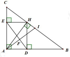 b) Kẻ \(HD \bot AB;\,\,HE \bot AC\) với \(D \in AB,\,\,E \in AC\). Gọi \(I\) là trung điểm của \(BC\). Chứng minh \(IA \bot DE\).