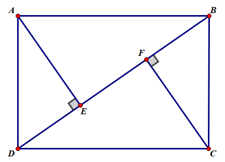 Cho hình chữ nhật \(ABCD\). Từ \(A\) và \(C\) kẻ \(AE\) và \(CF\) cùng vuông góc với \(BD\).