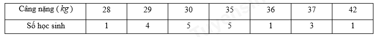 Số câng nặng (tính tròn đến kg) của 20 học sinh lớp 7C được ghi lại như sau:Có bao nhiêu bạn