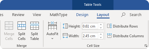 Dải lệnh Table Tools và nhánh Layout như trong hình KHÔNG xuất hiện những phương án nào sau đây?