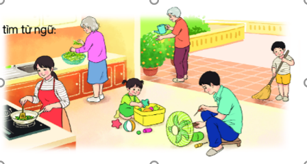Quan sát bức tranh sau và tìm các từ chỉ sự