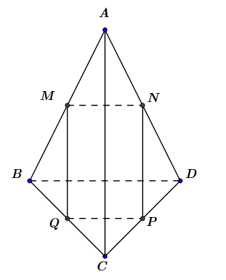 Cho tứ diện\(ABCD\). Gọi \(M,N,P,Q\) lần lượt là trung điểm của các cạnh\(AB,AD,CD,BC\). Mệnh