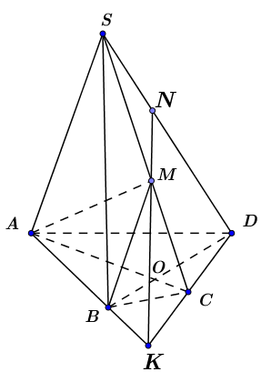 Suy ra đó chính là giao điểm của \(SD\) và \(\left( {ABM} \right).\)