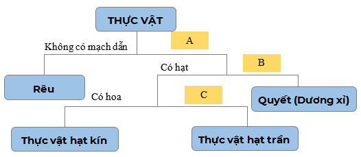 Khi xây dựng khóa lưỡng phân phân loại giới Thực vật, đặc điểm C