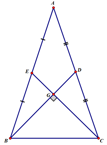 + Áp dụng định lý Pytago đảo chứng minh \(\Delta BGC\) vuông tại \(G\).