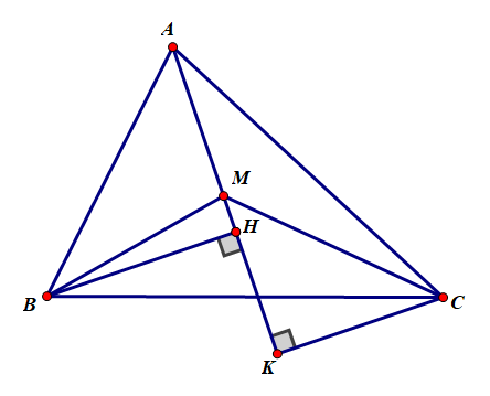 + Vẽ đường phụ: \(BH \bot AM,CK \bot AM\left( {H,K \in AM} \right)\)