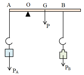 Một người muốn cân một vật nhưng trong tay không có cân mà chỉ có một thanh cứng có chiều dài l, trọng lượng \(P = 3\,\,N\), và một quả cân có khối lượng bằng 0,2 kg. Người ấy đặt thanh lên một điểm tựa O, treo vật vào đầu A.