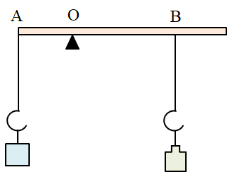 Khi treo quả cân vào điểm B thì thấy hệ thống cân bằng và thanh nằm ngang. Đo khoảng cách giữa các điểm thấy rằng: \(OA = \dfrac{1}{4}l;\,\,OB = \dfrac{1}{2}l\). Hãy xác định khối lượng của vật cần cân.