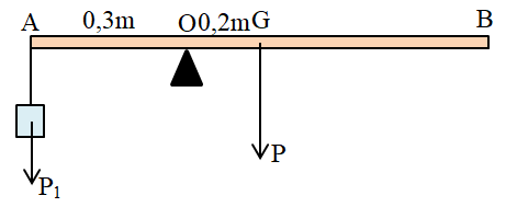 Thước AB = 100cm, trọng lượng P = 30N, trọng tâm ở giữa thước. Thước có thể quay dễ dàng