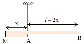 Một thanh AB đồng chất, tiết diện đều, có chiều dài l. Người ta muốn uốn gập nó tại một điểm M sao cho khi treo nó tại O ngay sát đầu A thì thanh sẽ thăng bằng. Tính chiều dài đoạn MA theo l.