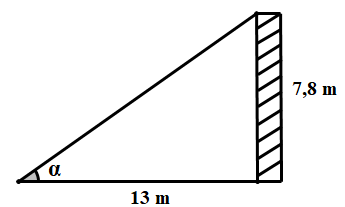 Một cột cờ cao \(7,8m\) có bóng trên mặt đất dài \(13m\) (minh họa như hình vẽ). Số đo góc