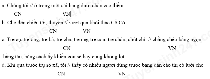Xác định chủ ngữ, vị ngữ trong các câu sau: a. Chúng tôi ở trong một cái hang dưới chân cao
