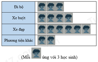 Biểu đồ tranh sau đây biểu diễn số lượng học sinh lớp 6A sử dụng các phương tiện khác nhau để đến trường.