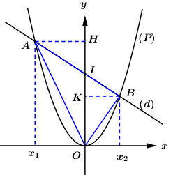 Tính \(OI;AH;BK\) sau đó tính \({S_{\Delta OAB}}\)