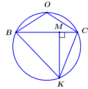 b) Chứng minh \(KA\) là phân giác của góc \(BKC\) và ba điểm \(K,\,\,O,\,\,A\) thẳng hàng.