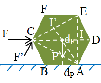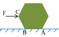 Một khối trụ lục giác đều đặt trên mặt sàn. Một lực tác dụng F theo phương ngang đặt vào đỉnh C như hình bên. Trụ được giữ chặt và có thể quay quanh A.