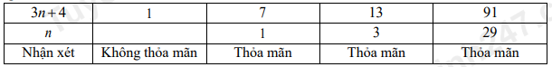 Tìm số tự nhiên \(n\) để phân số \(\frac{{6n + 99}}{{3n + 4}}\) có giá trị là một số tự