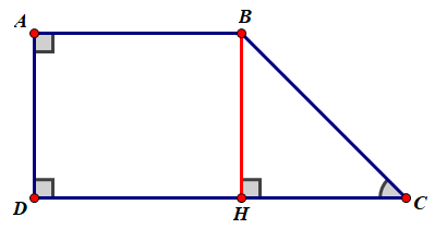 + Tính độ dài đường cao \(BH\). Từ đó áp dụng công thức tính diện tích hình thang để tính \({S_{ABCD}}\).