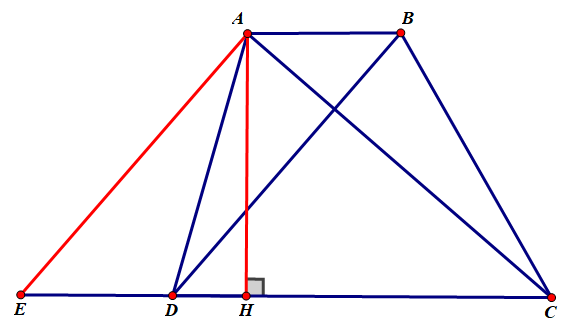 + Vẽ thêm đường phụ: \(AH \bot CD\left( {H \in CD} \right)\) và \(AE//BD\left( {E \in CD} \right)\).