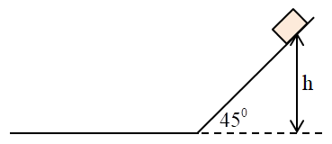 Một vật trượt từ đỉnh dốc nghiêng góc \({45^0}\) so với mặt sàn từ độ cao h. Khi xuống