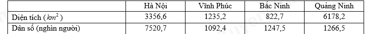 Cho bảng số liệu như sau: Quan sát bảng số liệu cho biết tỉnh/thành phố nào có diện tích