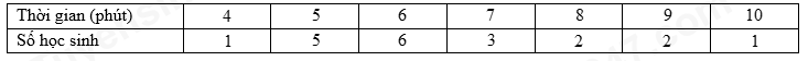 b) Có bao nhiêu bạn giải xong bài toán trên với thời gian là 4 phút, 6 phút? Thời gian giải bài toán nhanh nhất? Thời gian giải bài toán chậm nhất?