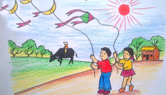 Đặt hai câu văn nói về bức tranh dưới đây. Trong câu có sử dụng từ chỉ hoạt động.