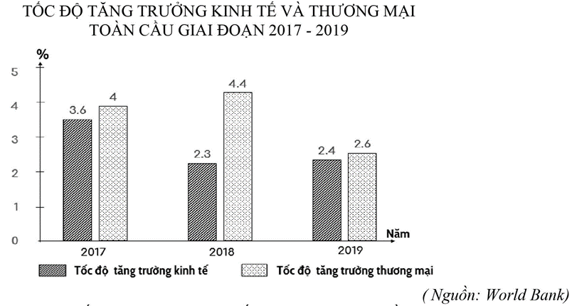 Phát biểu nào sau đây đúng với tốc độ tăng trưởng kinh tế và thương mại toàn cầu giai đoạn 2017 - 2019?