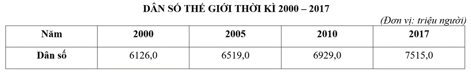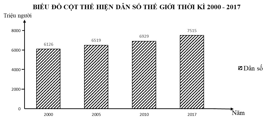 a) Vẽ biểu đồ cột thể hiện dân số thế giới thời kì 2000 – 2017?