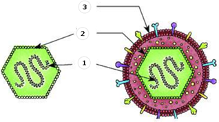 Quan sát hình dưới đây và xác định cấu tạo của virus bằng cách lựa chọn đáp án