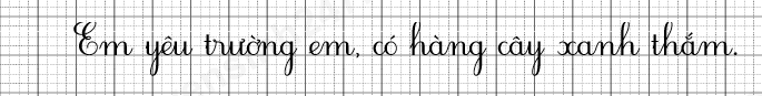 Viết lại câu văn sau bằng chữ E viết hoa: Em yêu trường em, có hàng cây xanh