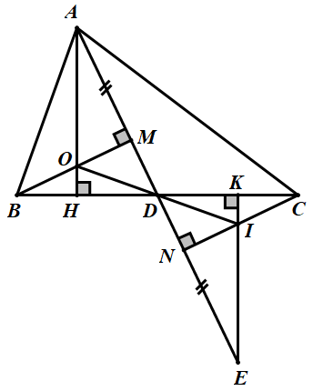 Chứng minh \(\Delta AMO = \Delta ENI\left( {g.c.g} \right) \Rightarrow OM = IN\)