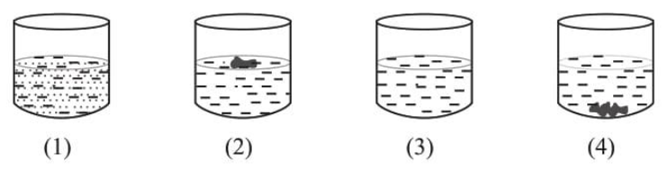 Lần lượt cho 4 chất rắn vào 4 cốc nước, khuấy đều. Kết quả thu được ở 4 cốc như sau:
