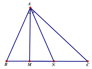 Cho tam giác \(ABC\). Trên cạnh \(BC\) lấy hai điểm \(M\) và \(N\) sao cho \(\angle MAB = \angle NAC\).