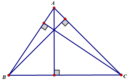 + Chứng minh \(b + {h_b} = c + {h_c}\)\( \Leftrightarrow \Delta ABC\) cân tại \(A\) hoặc \(\Delta ABC\) vuông tại \(A\)