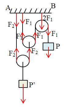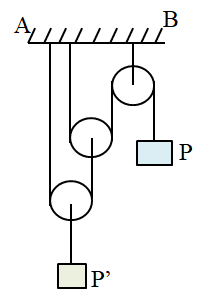 Tính P’ theo P để hệ thống vẽ ở hình cân bằng. Tính hợp lực tác dụng vào giá AB.