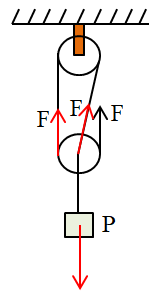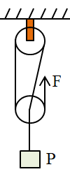 Xác định lực kéo F để hệ thống vẽ ở hình cân bằng. Cho \(P = 300\,\,N\).
