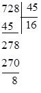 Chia \(728\) cho \(45\) ta được kết quả là: