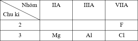 Cho: ZMg = 12, ZAl = 13, ZCl = 17, ZF = 9. Dãy sắp xếp các nguyên tử theo chiều bán kính giảm dần