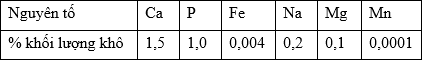 Ở cơ thể người, xét một số nguyên tố có tỉ lệ % so với chất khô như sau: