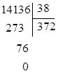 Vậy \(14136:38=372\)