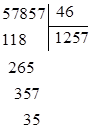 Vậy \(57857:46=1257\) dư \(35\)