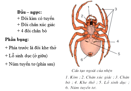 Hãy điền chú thích hình vẽ cấu tạo ngoài của nhện:
