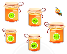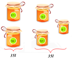 Tính tổng lượng mật ong ghi trên các hũ, các hũ nào có tổng bằng \(35\,l\) thì chọn các hũ đó.