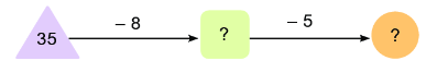 Lấy \(35-8\) rồi điền kết quả vào dấu hỏi chấm đầu tiên, sau đó lại lấy kết quả đó trừ đi \(5\) rồi điền kết quả vào dấu hỏi chấm thứ hai.